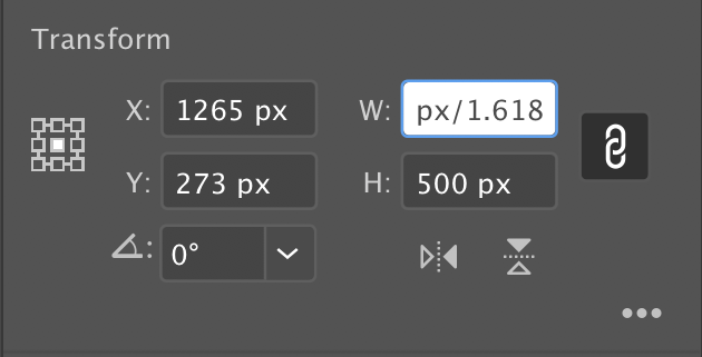 3. transform 창에서 " 1.618 "로 계속 나누어 주면 된다.