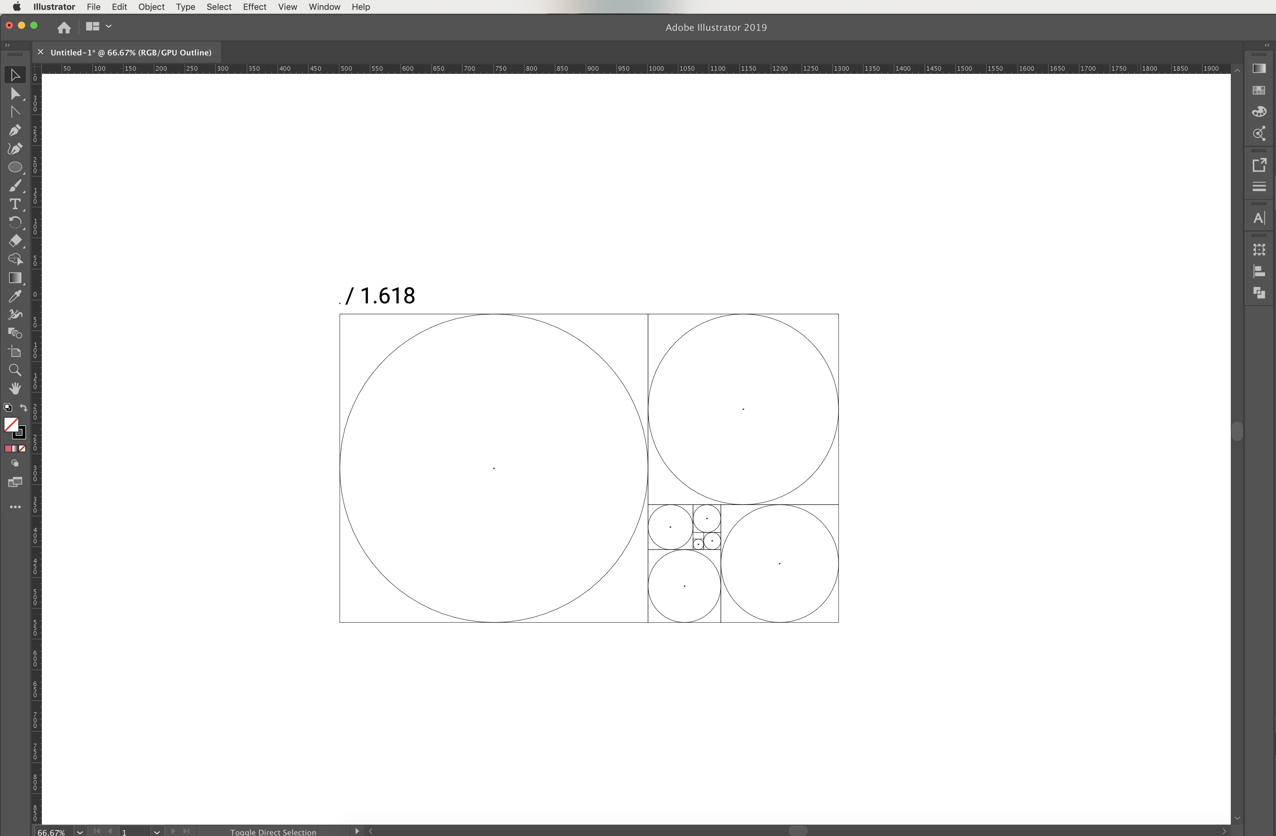일러스트레이터에서 황금비율 그리드를 만들기 위해서는 " 1.618 "만 기억하면 된다.