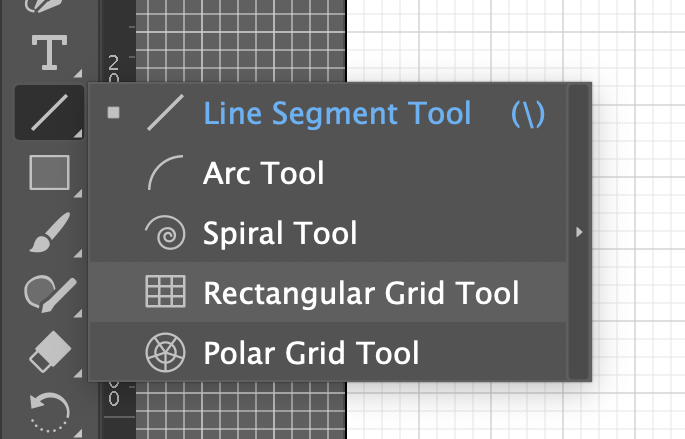 1. 툴바에서 라인에서 마우스 오른쪽을 누르면 나오는 툴 중에 Rectangular Grid Tool을 선택한다.