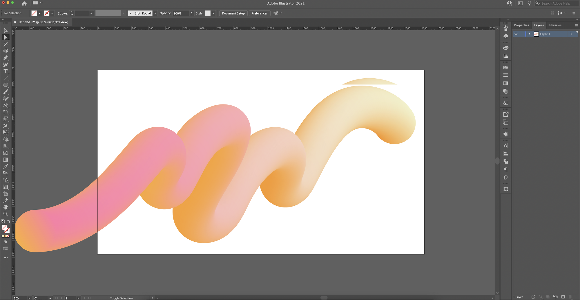 3. 색이 반대로 적용이 되긴하지만 3D느낌이 나는 라인이 적용 된다. 적용이 된 이후에도 색상과 패스를 수정할 수 있기 때문에 조금씩 수정해 나가면서 완성도를 높여나간다.